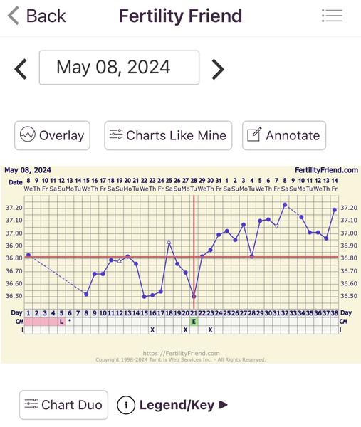 @ersp no, ja ešte len čakám ovuláciu, v pondelok mal folikul 14 mm a keďže tento mesiac nechodím na folikulometriu, iba pred hyfosy, čo spravili meranie, tak to iba odhadujem na víkend. Takže nejaké 2 týždne +- ťa predbehnem 😊
