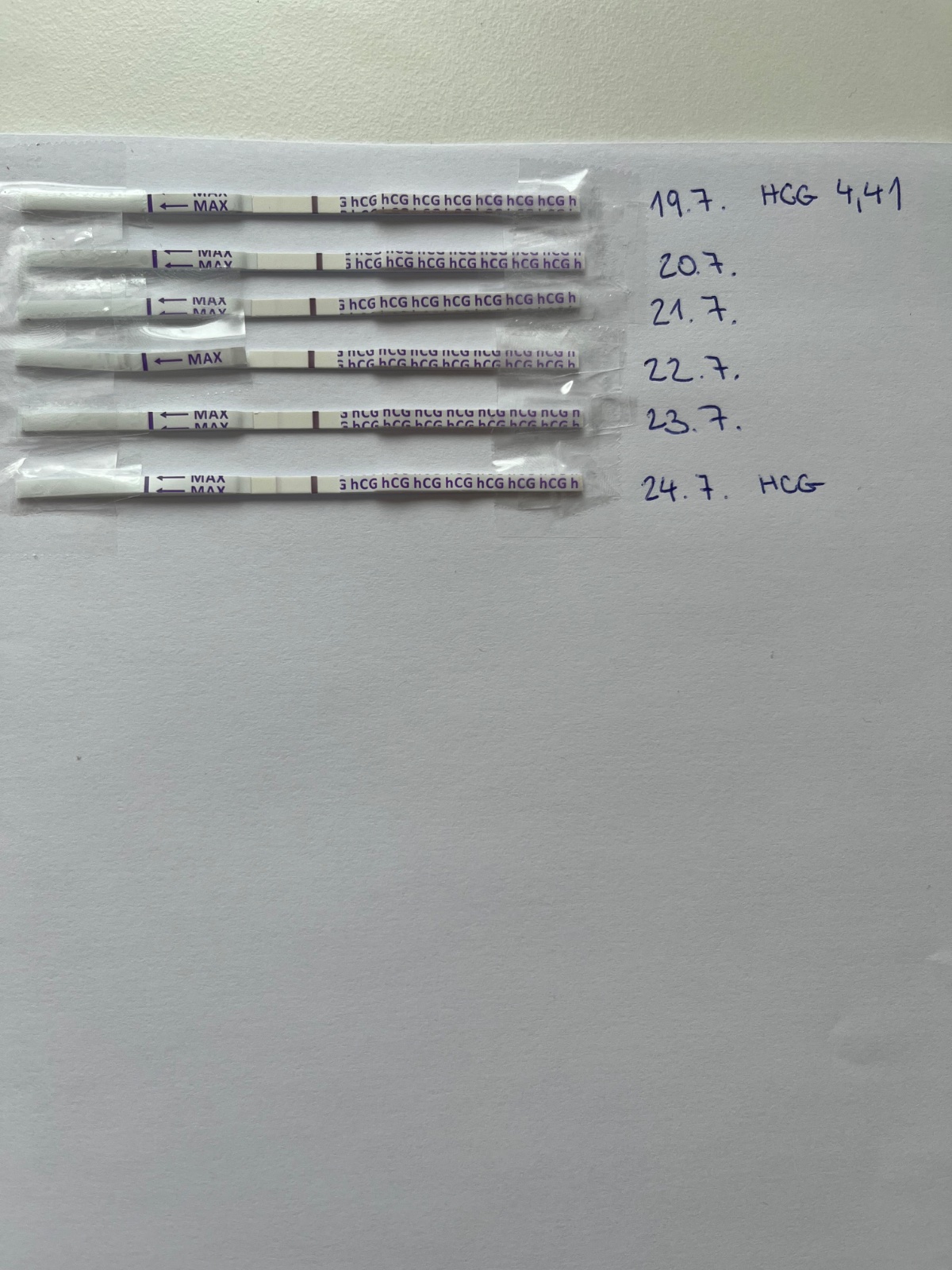 No dala som dokopy tie toto testy čo poviete ? Mne príde akoby sa to hcg začalo produkovať až od 21.7