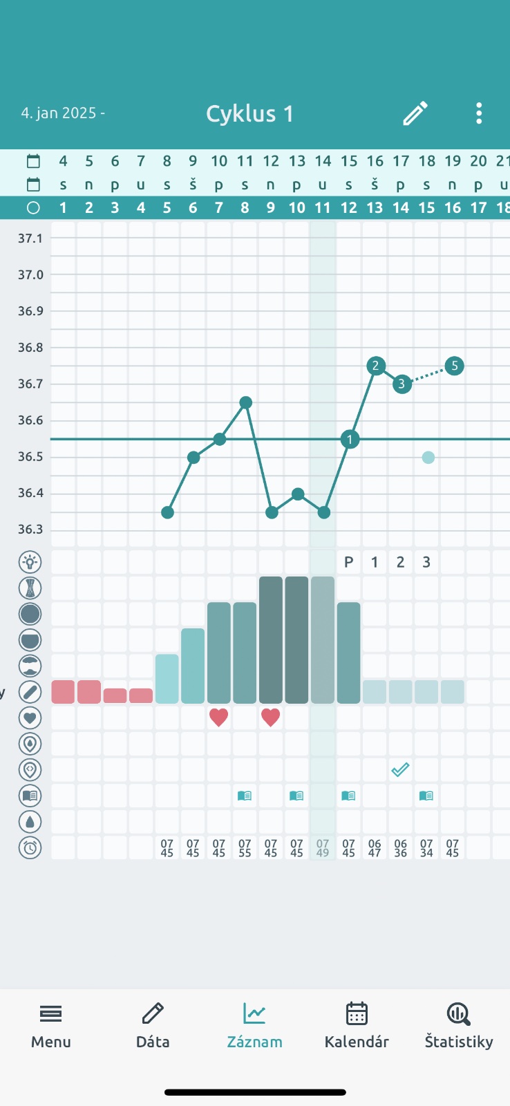 Tento cyklus mi aj moje múdre hodinky vyhodnotili ovuláciu na základe teploty na zápästí, ktorú mi merajú každý deň v rovnakom čase a to o deň skôr ako meraná teplota klasikou teplomerom.