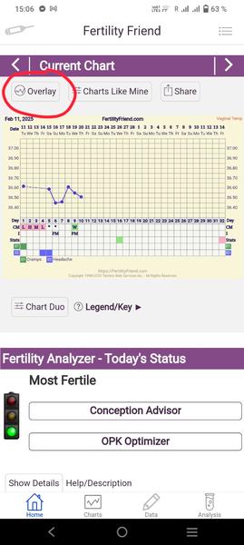 @marinecka95 je tam "tlačítko" overlay (tam si potom nastavujesš ďalej, či chceš prekrývať od začiatku cyklus, alebo na základe ovulácie a podobne) ... Ale je to v platenej verzii ... Ja som si zaplatila pred 2 rokmi, jak som začala merať a potom som deaktivovala účet, keď sa podarilo, takže cca 3,5 mesiaca som ju využila a teraz som reaktivovala účet, takže mám stále platenú ešte na 218 dní 🙂