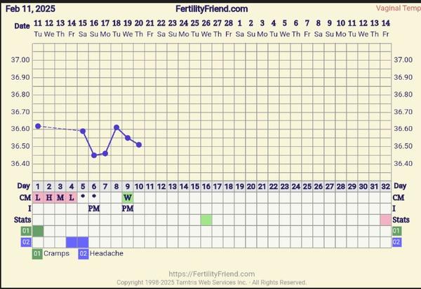 @marinecka95 pekný graf, na 5dpo som mala i ja 2x 🫣🤔 ... A že každý cyklus iný, no neviem u mňa 😅 dosť podobný až kopirujúci 🤣 uvidíme či aj ovu na 14dpo bude a aký koniec cyklu 😅 ...