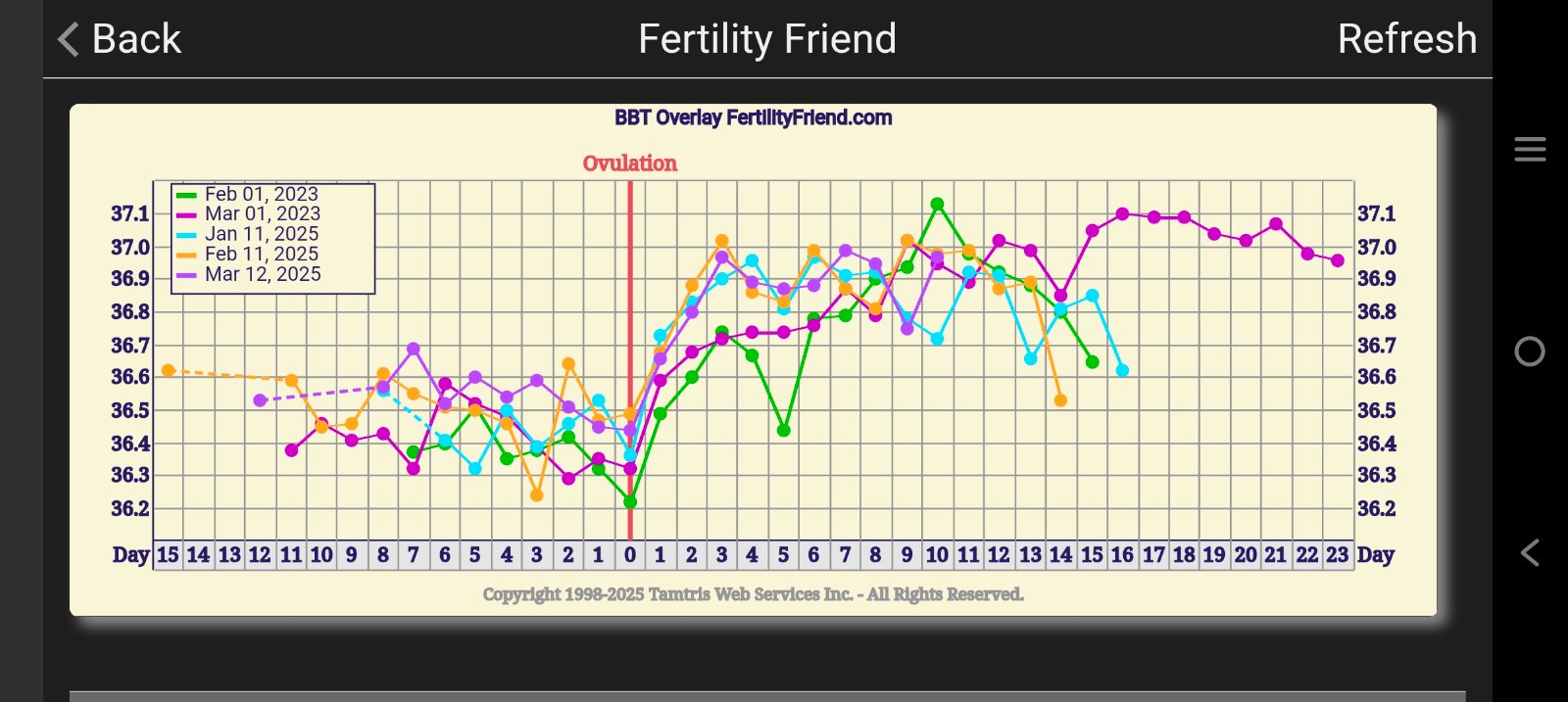 @majulka098 môj graf vyzerá takto…,dlho som nemala tak neskoro ovulaciu ak môžem rátať s tým že by bola niekde medzi 15dnom … určite stres z toho všetkého 😃 čo myslíš? Keby podľa teba mohla prebehnúť?