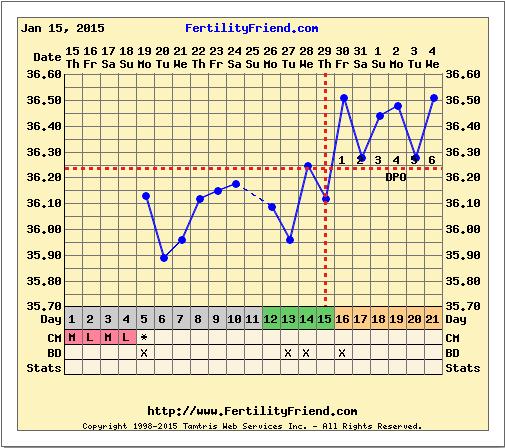 @tisicka123 @paskolinka @rybkaa....baby prosim Vas, co hovorite na moj graf teraz? Podla neho prebehla ovulka az 24DC, co sa mi tak trosku nezda. Myslela som, ze meranie teploty mi pomoze a nie uplne zmatie 😀 😠 Od 20DC ma bolia prsia a citila som jemne bolesti v podbrusku (podotykam prsia ma nikdy predtym neboleli). Prvy cyklus beriem gynex, moze to byt teda podla Vas tym? Aj teraz citim podbrusko. Waaaa, som z toho uz uplny blazon 😀 http://www.fertilityfriend.com/home/57405a dakujem Vam