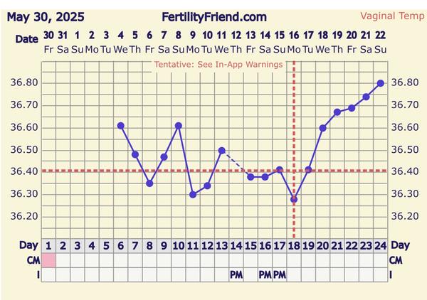 @zdsa graf máš pekný...tiež mi vo vydarenom cykle cca 5 dní po ovulke začala BT klesať...a potom vystúpila...keď sa mi to stalo prvý krát tak som myslela že mi dôjde ms skôr...potom prišlo prekvapko s pozitívnym testom...keď sa mi to stalo druhý krát,už som vedela že to bude tehotenstvo a že to bude ok...držím silno všetkých dvadsať 🫶nech je to aj u teba dobré znamenie...