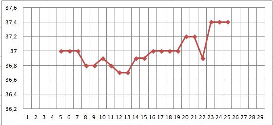 a graf si znacim doma do tabulky........a inak dnesna teplota bez zmeny 37,4.........a nist :(