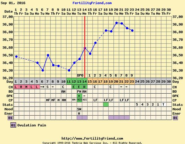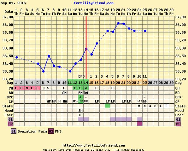 Dievcata co hovorite na moj grafik? Dnes cakam mrchu, ale ziadne bolesti v podbrusku a ani prsia ma nebolia. Prekvapilo ma ze teplota dnes isla hore, pretoze prvy den ms mavam 36,4. Test som robila pred 2 dnami a bol negativny. Nemohla som mat posunutu ovulku? 24 dc som mala takmer pozitivny ovu test, ale ziadne pichanie v podbrusku som nemala.