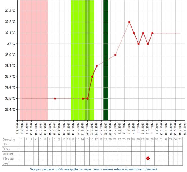 uvidis, ja mam nejaky cudny graf tento mesiac, som 5DPO a stvrty den mam rovnaku teplotu, vzdy po ovulke mi klesne a teraz nic....aj prsia ma ovela menej bolia, co mna do menstruacie od ovulky bolia brutalne celych 12 dni...
