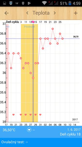Ja takto cakam na ovulku ale kedze mavam az okolo 18-21dc tak sa este nacakam😍zatial ziadny naznak ze by sa chystala...neviem asi vymazem tie dve vyssie teploty na zaciatku, to bola asi len nejaka haluz