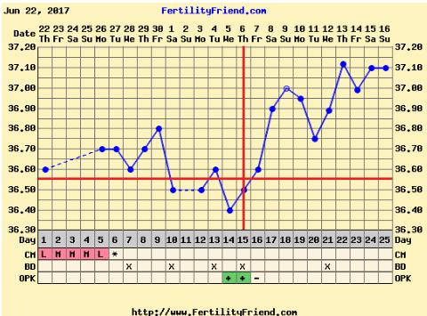@jasminkaj ta prerusovana zvisla ciara oznacuje ovulaciu, vodorovna oddeluje predovulacne a poovulacne teploty.