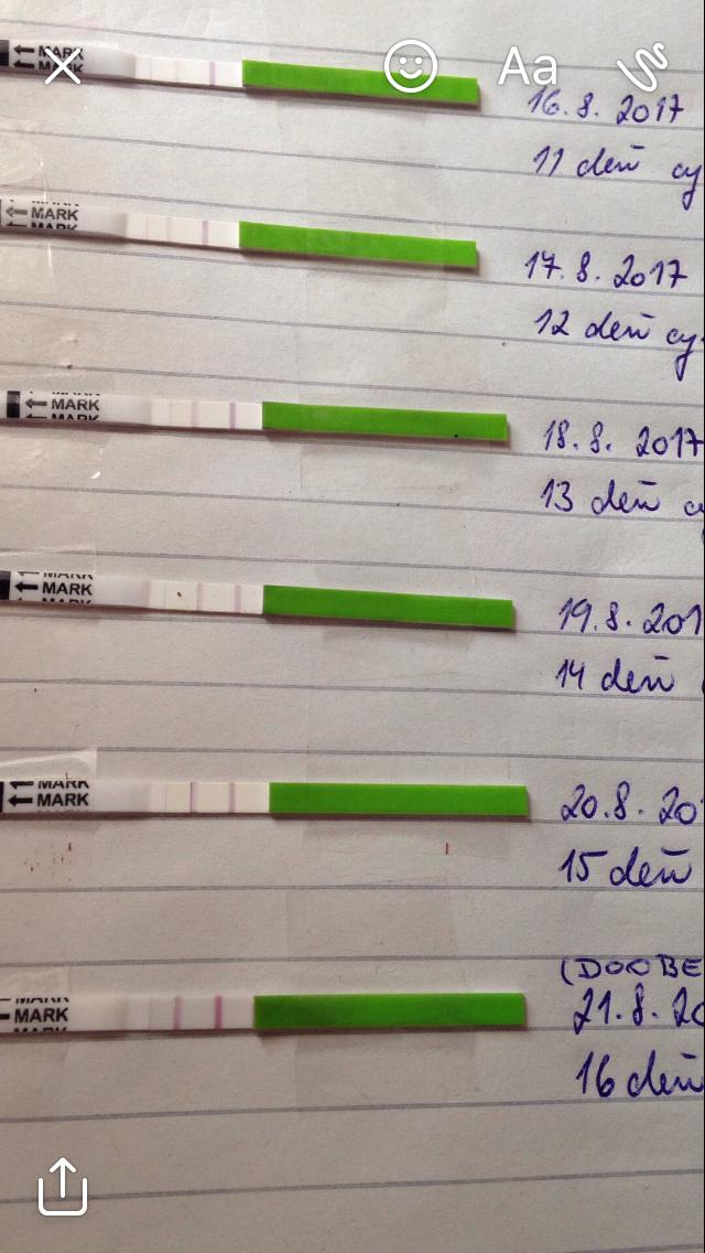 Ahojte žienky mala už niektorá to čo teraz ja? Na 13dc som začala špiniť tmavú krv až do čierna včera hnedasto červenú a dnes nič pozitívny ovu test.