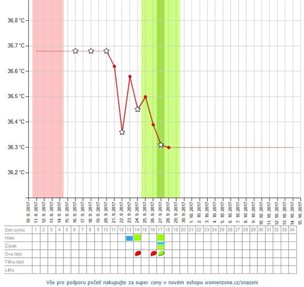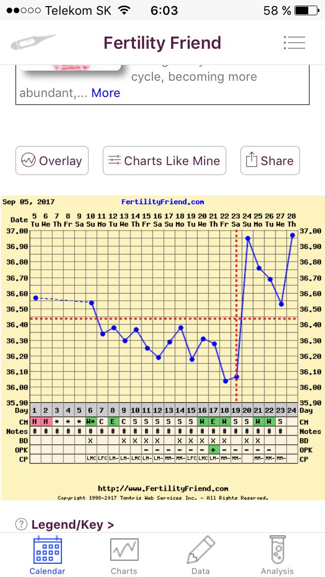 @0507 ak bola ovu tak ako je vyznacene tak druhy den meska... ak az na 20dc co som si neni uplne ista skor mi to sedi na ten 18dc podla hlienu aj bolest a aj testu- 16dc bol takmer pozitivny dalsie uz boli negat. Noo tak keby aj bola na ten 20dc tak v tom pripade by dnes mala prist ale teplota je hore tak nevieeem😕