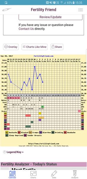 @vikanemo tak to bude tym zaznacenim cipka v 7den. tam ti hodilo 4 po sebe plodne dni, len na zaklade cipku. Skus ho prepisat, nech nie je v zelenom (zmen jednu z troch variant). Ale mas tam aj tak 3 po sebe nasledujuce vysoke teploty, tak mozno ti to neprepise hned, ako hovori @kudusko daj si dnes opk+