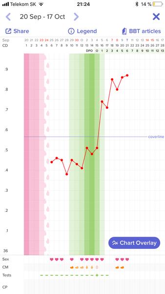 @kariangela ďakujem za odpoveď. Ovuláciu som mala potvrdenú sonom. Test bol pozitívny 2dni pred tým. BT mávam 1.faza od 36,2 do 36,6.po ovulácii sa vždy držala na 36,8. Teraz až na tretí deň stúpla a kolíše mi stále 36,6-36,8 ale zrejme to môže byť aj stres z úmrtia v rodine hneď po ovulácii. Asi tie merania už vzdám.