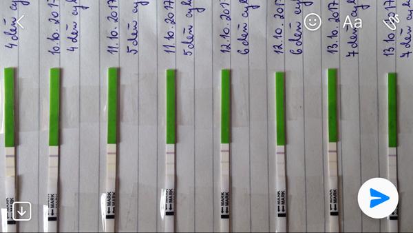 ahojte, voláko tomu nerozumiem, menzes som mala od 4.10 do 11.10, od soboty mám BT zníženú na 36,3 a dnes ráno ako keby som mala tahavý výtok ako keby bielok no ovu test mi neukázal druhú paličku vôbec tmavú ale takú slabú, pridávam foto zo včera 15.10. o 13:00 hod, dnes urobím o 13.00 hod ovu test druhý, čo myslíte? už dnes ovulujem? mám aj trošku bolesť na ľavej strane...