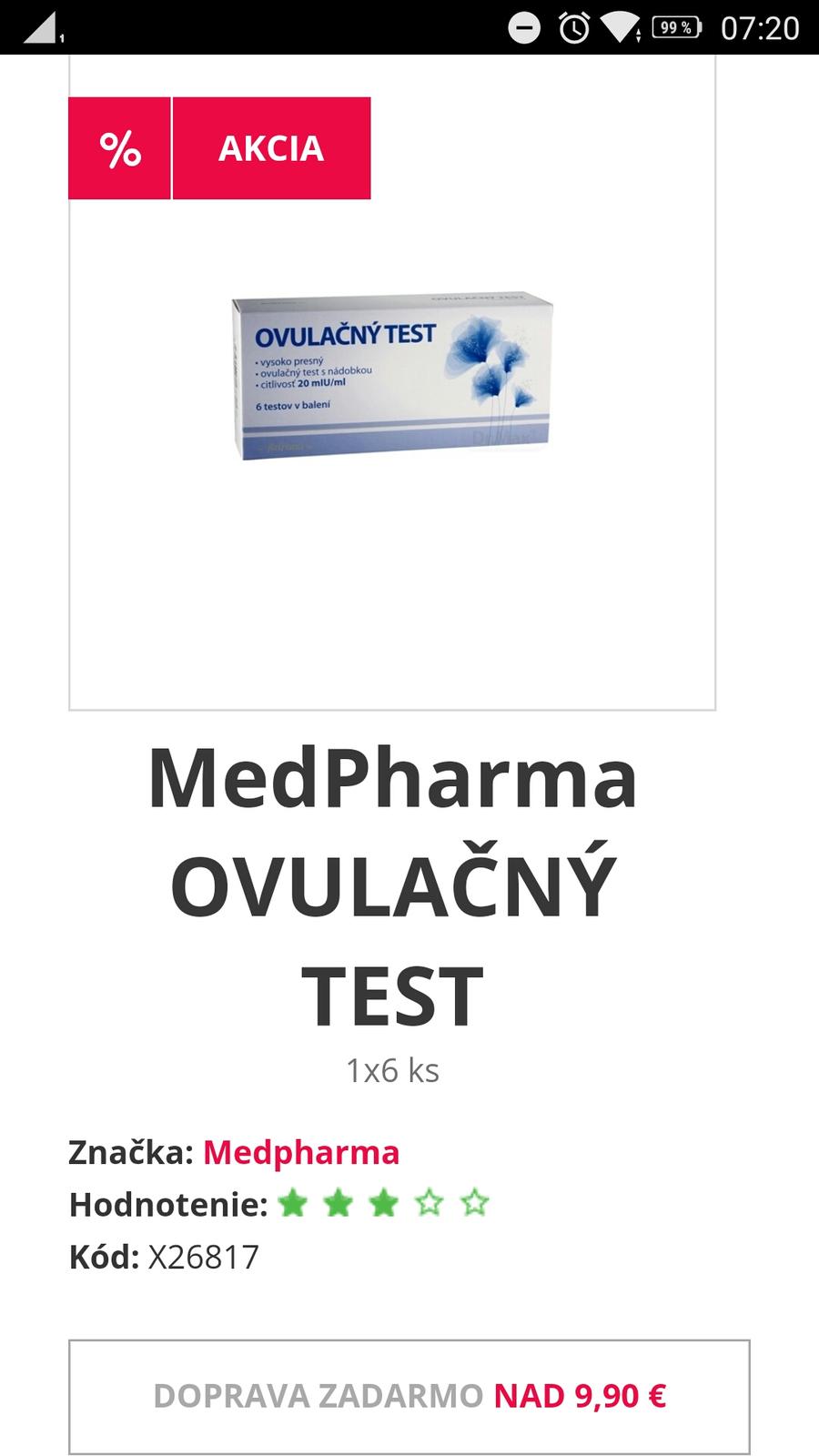 @tuqanqa ahoj,ja som si objednala z lekárne dr Max 6ks za 3,99€ tak to vychádza cca 0,66€ za jeden. Je tam poštovné zdarma nad 10€ ak platíš vopred,ak na dobierku tak priplatis 0,99€. Pondelok som objednala,v stredu mi to prišlo. Myslím že ak si dáš vyzdvihnutie v lekárni je to tam nasledujúci deň,ale to si prever,neobjednavala som tak ešte,vždy cez kuriéra. Prípadne sa skús v lekárni spýtať či ich nemajú, aj keď v predajni majú vždy všetko o dosť drahšie než cez e-shop.