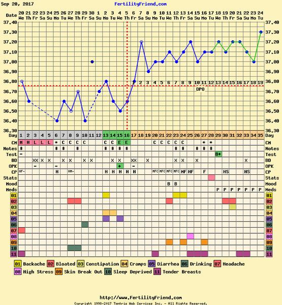 Este meraj.Hadam zajtra vyskoci a udrzi sa 3 dni.V tom pripade by ovu bola dnes.Ja ked som pila Inofolic mala som bolesti pred ovu,niekedy po ovu,takze som sa podla toho neriadila.Skor len merat bazalku a v obdobi okolo ovulky sledovat hlien.