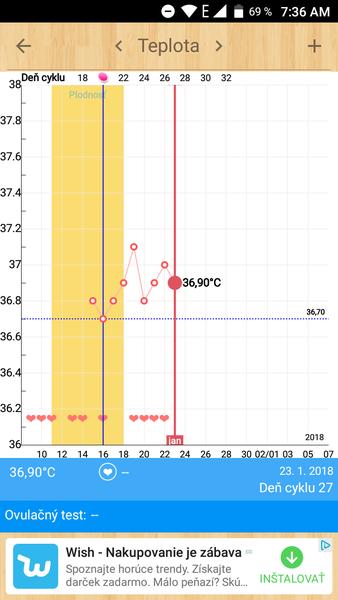 Keby si mala teplomer na 2 desatinne a toho 18 a 19 -teho mala teplotu co i len 36,53 ,tak ovu mohla byt 17 -teho.