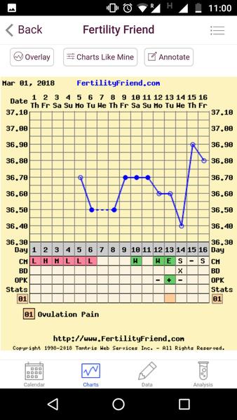 Prosim poraďte: 1) prečo mám také vysoké teploty vo folikularnej fáze? Niekde som čítala, že to môže znamenať zápal a je pravda, že mám teraz problémy s prsiami 2) poz. ovulacny test som mala 13.3. okolo 17tej, aj ten super hlien, aj nejaké zrejme ovulacne bolesti neskôr večer. 14.3. ráno už bola zmena hlienu na ten hustejší, ale teplota ráno bola ešte nízka. Ov test bol už úplne biely. Čítala som, že ak sa ovulácia stane v noci, rano ešte nemusí byť zvýšená teplota, ale až o deň neskôr. To by mohol byť môj prípad. Kedy je najpravdepodobnejšie, že bola ovulácia?
