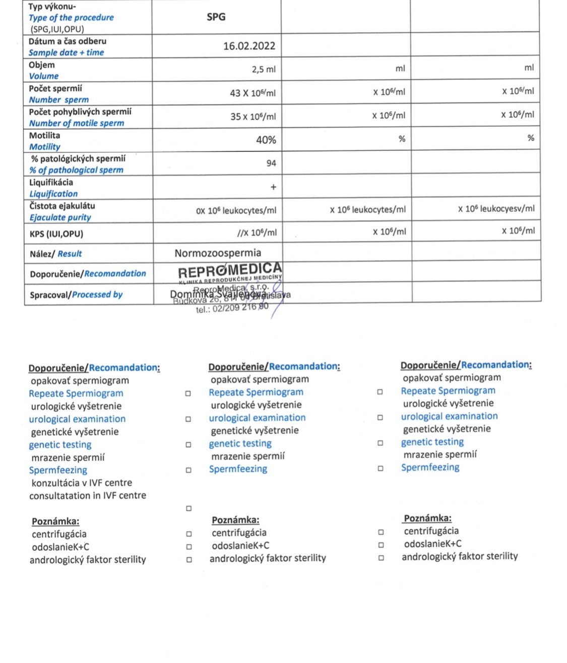 Ja som si spermiogram robil hlavne koli tomu že mi to nakazal urológ keďže pri vyšetrení mi našiel kŕčovú žilu na semenníku