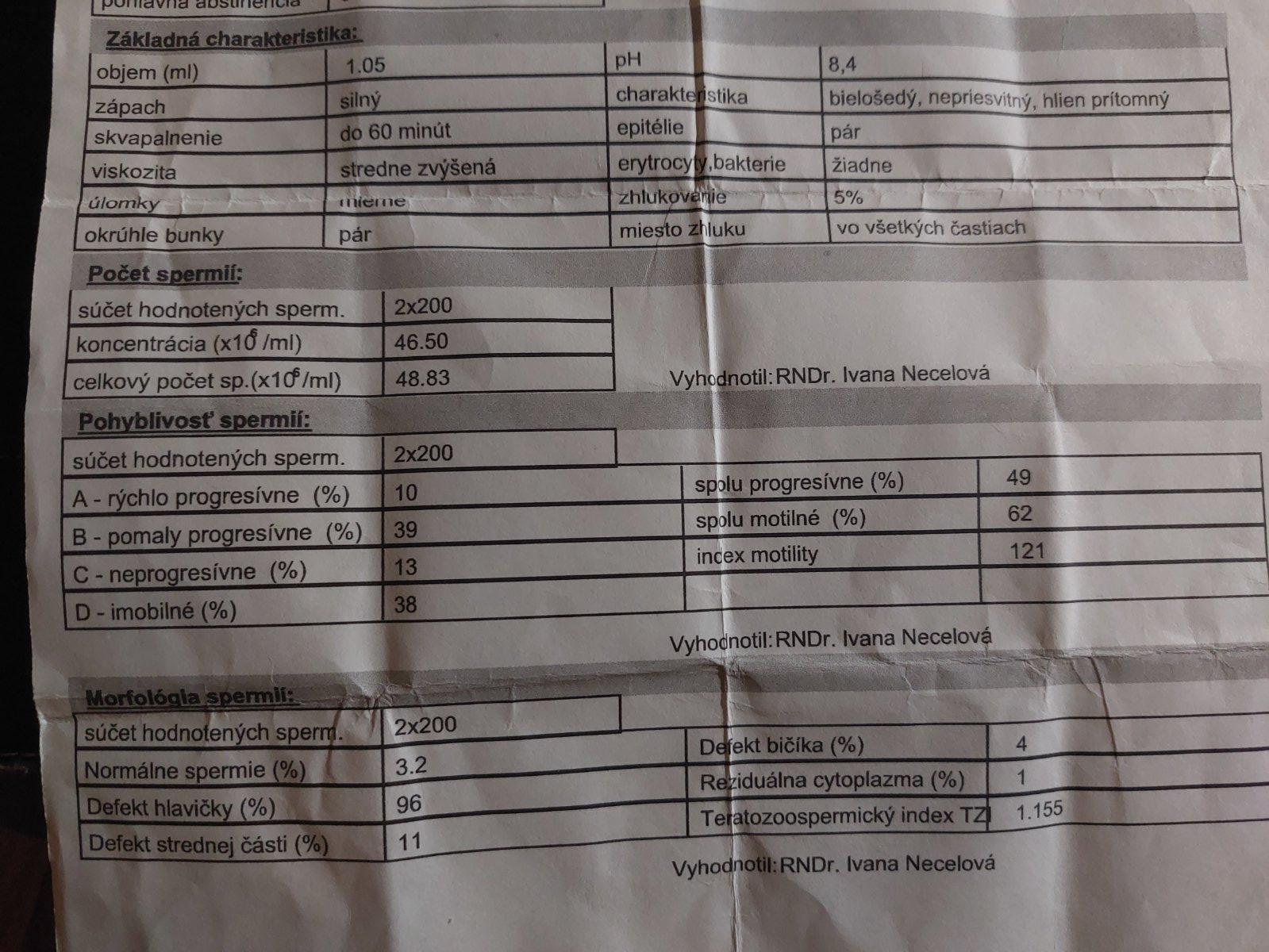 Dobrý večer ja by som sa iba chcel spýtať v krátkosti keďže som bol u doktora na spermiogram ktorý mi povedal že som do veľkej mieri v poriadku a nemal by byť problém v tom že moja manželka môže spontánne otehotnieť. Ja by som ale rád vedel aj váš názor či ten spermiogram je okay? Ďakujem pekne vopred ďakujem.