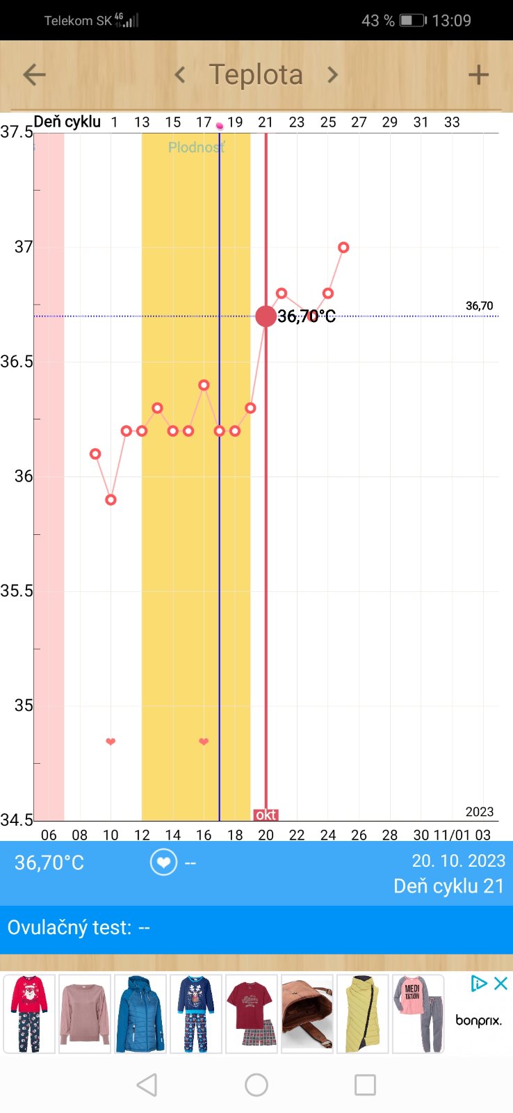 @luciferka93 teplota sa musi drzat nad liniou (linia je na urovni 6 nameranych teplot pred 1dpo na najvyssej s z tychto teplot. U teba cca 36,40-45? Tazko sa mi cita uroven teploty z grafu)🤗