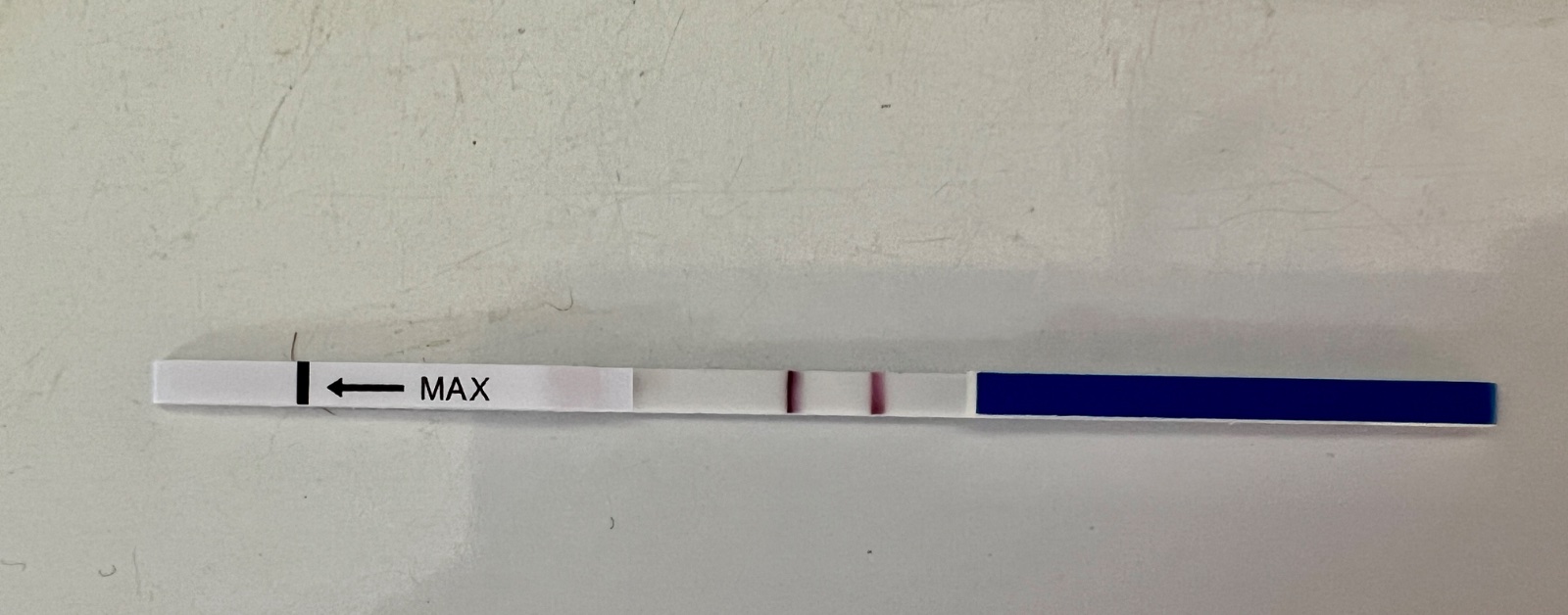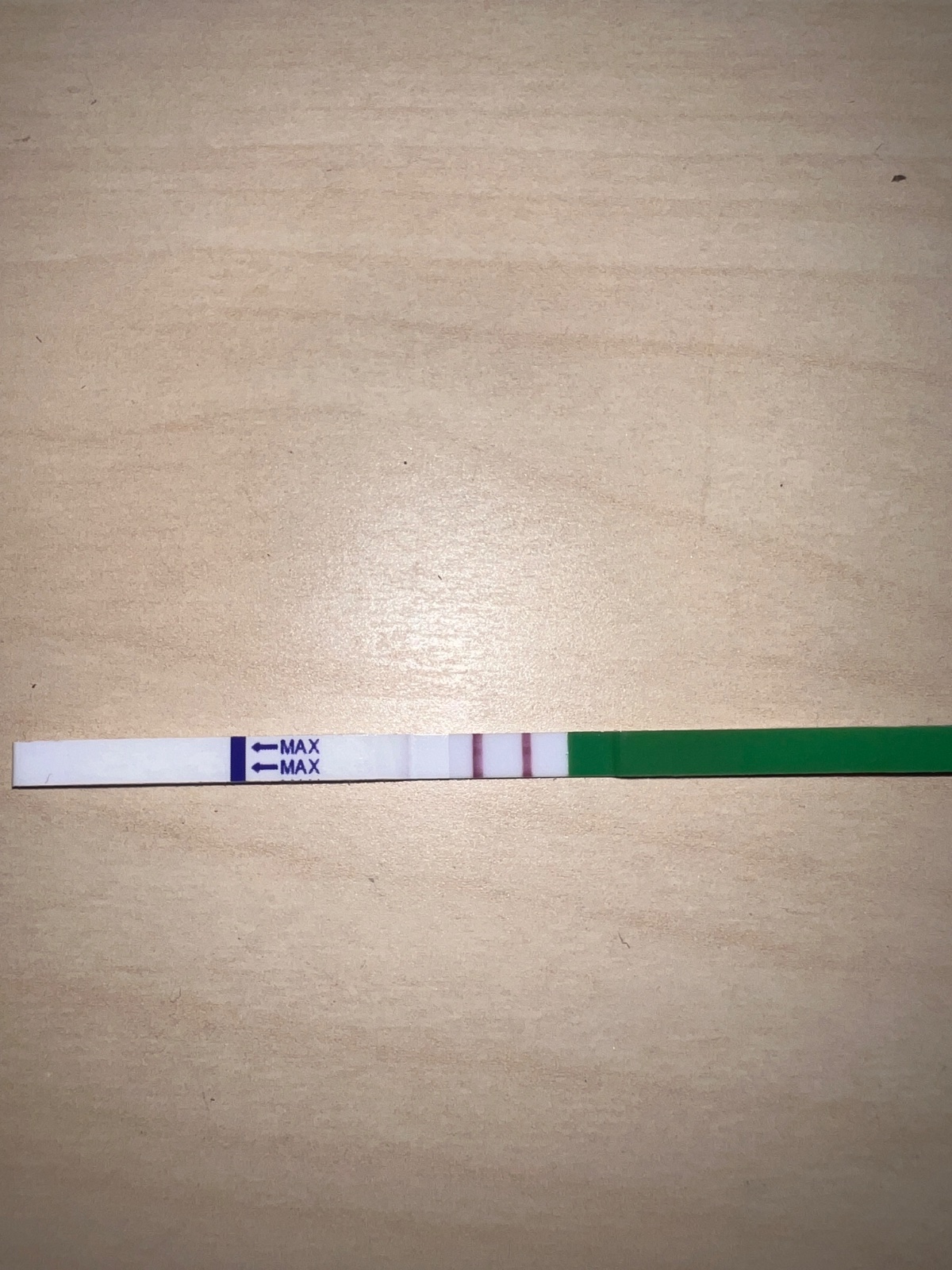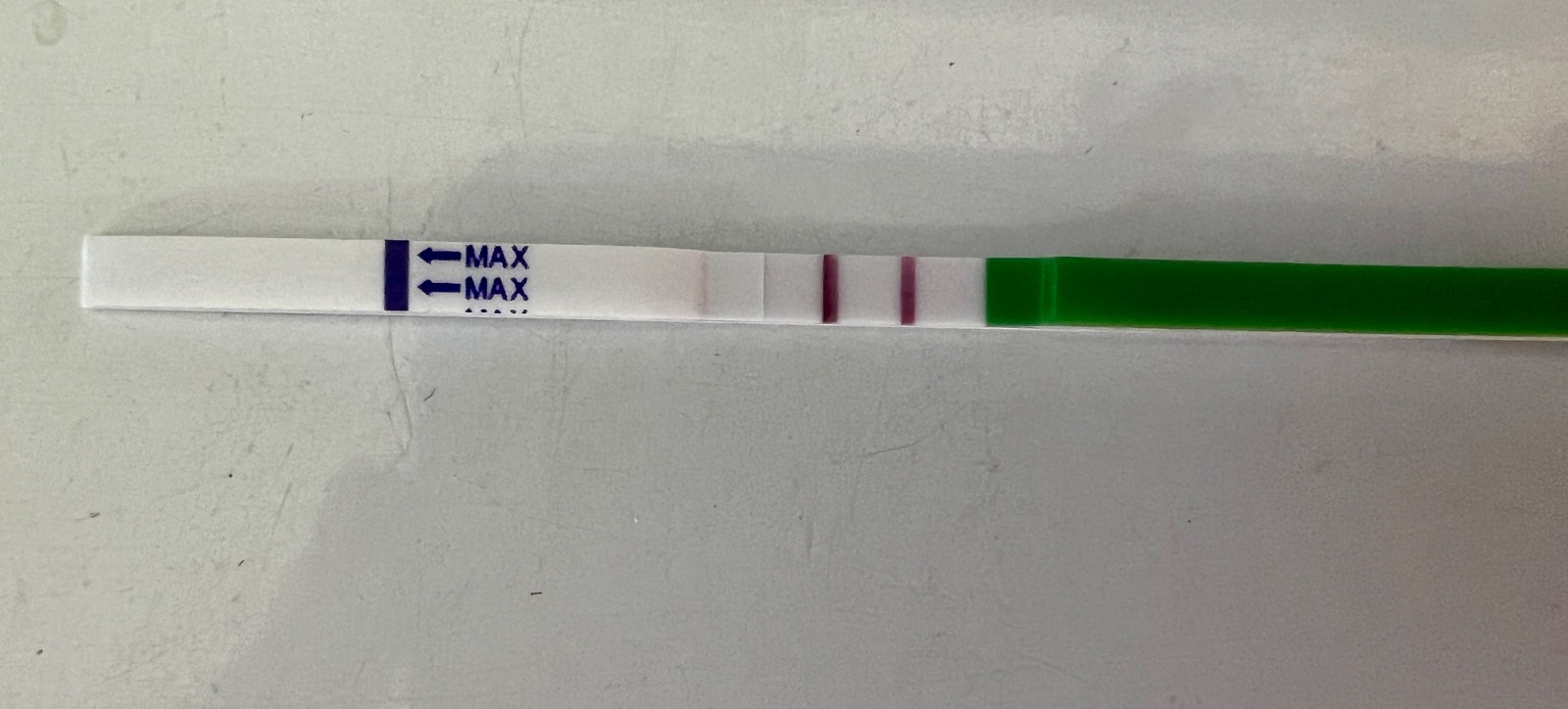 Pozitívny bude, až keď bude testovacia čiarka taka tmavá ako kontrolná čiarka alebo tmavšia.