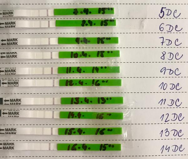 ja som testovala od 10 dna po 17ty den cyklu kazdy den.... to znamena ze 1DC mas ked dostanes menstruaciu.. a zacni testovat o 10dni na to... a ked budu ciarky uplne rovnako silne alebo dokonca testovacia silnejsia vtedy sa snazte 🙂 my sme sa snazili 4m a hned prvy mesiac s ovu testami to vyslo...na 5ty mesiac 🙂 drzim palce...