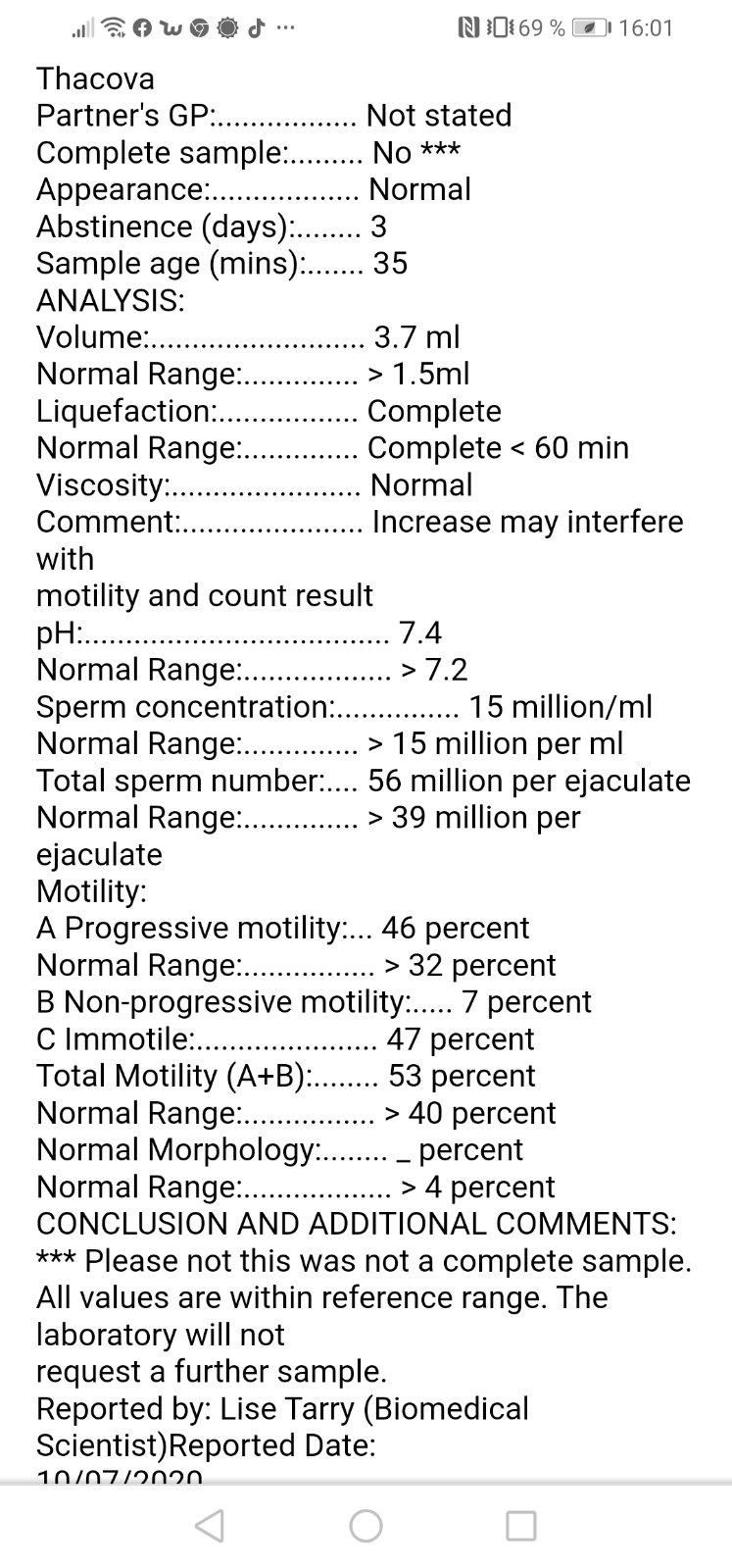 @simina127 Udaj morfologie chyba, tam jedine moze byt "problem". Ale to je asi taka hodnota vo vseobecnosti, takze skor ja tak problem nevidim ziadny. Spermii je dost 15 mil. na ml, je to sice na hranici, ale nic strasne. Doktor sa k tomu este nevyjadril? Ako dlho riesite otehotnenie?