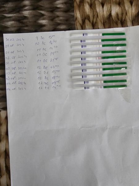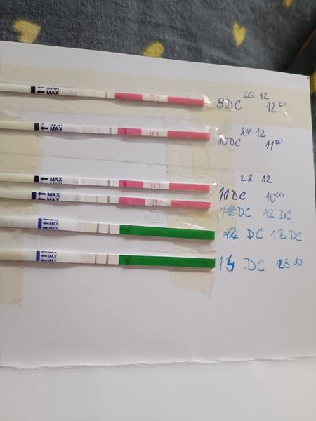Kocky tu sú moje ovulacne testy 13 deň cyklu bol najsilnejší to bolo 30.12 to sme malý styk a aj 31.12 ties odvtedy až dodnes má boli ľavý vajecnik potom ako by ma vnútri niečo ťahalo potom bolesť kryzov plynatosť a citlivé až boľavé prsia čo si Otom myslíte môže to byť oplodnenie lebo toto som nemala ešte a bolenie v podbrušku ako pri Ms čo si myslíte kedy si môžem spraviť test či počkať až keď mi majú prísť svoje dni ďakujem lebo ovulacne testy som si robila po prvý krát