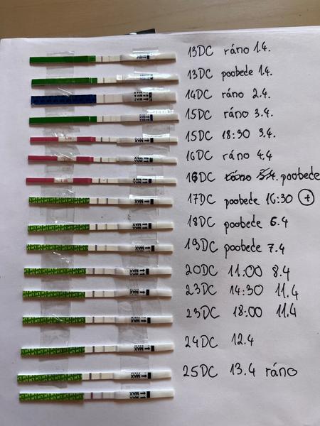 @monci234 s tymi ovulacnymi mozes v tomto stadiu prestat, nic ti nepovedia. Testuju hormon, ktory mas v tele bezne, a ty testovanim iba hladas nahle zdvihnutie hladiny tohto hormonu, co je spustac uvolnenia vajicka. Pozitivny test si mala pred 7 dnami, to sa oplodnene vajicko ani nestihlo uhniezdit, neprodukuje sa este HCG. Ak by si aj mala ovulaciu 17 DC hned ako bol pozitivny test, a vajicko sa uhniezdilo v najskorsi mozny termin 6 dni po, este bude trvat najmenej dva dni, kym to najcitlivejsi domaci tehotensky test zachyti. Ale je tiez rovnako mozne, ze ovulacia bola do 48 hodin od pozitivneho testu, a oplodnene vajicko sa moze uhniezdit az 12 dni po tom, a test by to mohol ukazat az o dalsie dva dni, cize je mozne, ze ovulacia bola 19 DC, uhniezdenie az 31 DC a pozitivny test az 33 DC. Tychto par dni nema zmysel obsesovat nad testami, lebo nemaju ziadnu vypivednu hodnotu. Pockaj par dni, a mozes testovat tehotenskymi, ovulacne si odloz do suflika.