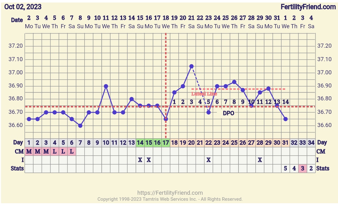 Ahojte, chcela by som vás poprosiť pozrieť sa na môj graf, či mám anovulačný cyklus alebo nie? BT si meriavam už pár rokov a vždy nám grafy jasné, po ovulácii mávsm teplotu vždy cca 37.1 a klesne vždy až v deň nástupu MS, ale tentokrát mám tie teploty také divoké, po ovulácii neboli dostatočne vysoké tak ako som zvyknutá. K tomu ma už tri dni pobolieva podbruško ako cez MS, bazalna teplota je nižšia, MS nikde, a tie teploty sú také nejasné. Prosím o vaše rady.