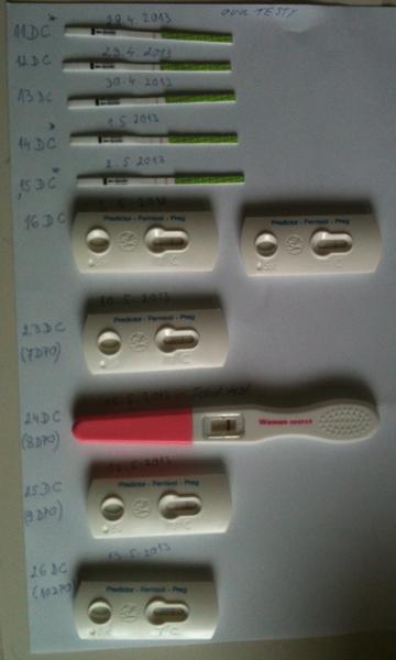 @elenita ako vidis na fotkach, zacala som testovat 23 dc, sice ovu testy neboli pozitivne, ciarka mi tmavla, na 24 dc som vyskusala tehu test a ten bol este negativny, ovu testy som robila dalej a dalje tmavli, takze som bola dost zmatena, na 26 dc som uz mala pozitivny ovu test, ale este som tehu nerobila, ale mozno byuz nieco ukazalo a 27 dc (den pred MS) mi to nedalo a testla som tehu test a vysla slabunka ciarocka a ovu test uz uplne pozitivny. V mojom fotoalbume najdes vsetky foto..v den ocakavanej ms bola ciarka na tehu teste trosku silnejsia a ovu test pozitivnejsi ani nemohol byt...daj vediet ako si uspela, prajem ti, aby si uvidela vytuzene //