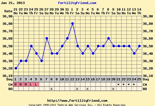 @elje fuuuha, tak z tohoto sa moc neviem vysomarit. Ja som to mala ovela jednoznacnejsie. Po ovulke sa ma teplota drzat vyssie, ako pred ovulkou, oznacuje to cinnost zlteho telieska a hormony v lutealnej faze. Teda aspon tak laicky povedane. A hlavne, nikde tu nevidim klesnut teplotu o moc nizsie. Ja osobne si myslim, ze ti ovulka mala ist okolo toho jedenasteho, ked sa ti teplota splhala hore. Len nerozumiem, preco ti potom teplota tak klesla a nezostala hore...hmmm. prikladam aj moj graf, aby si mala predstavu 🙂 ja som mala ovulku 16 ab 17 DC alebo dni okolo toho. Proste teplota klesla a zacala stupat do neba a drzala sa tam az to MS. Den pred mi z 36,7 klesla na 36,4 . Dnes som mala 36,5, cize sa mi teplota vratila na obdobie pred ovulaciou. A budem vediet, ze ked mi klesne na trebars 36,4 a potom zacne stupat cez 36,6 tak to bude plodne obdobie 🙂 Teda dufa, ze tento graf zopakujem hned po MS a budem mat 30 dnovy cyklus 🙂 Ja si myslim, ze merat BT je to najlepsie, co som mohla zacat robit, je to velmi jednoznacne, ked dodrzujes pravidla a kazdy den si merias v rovnakom case hned pozobudeni a spis minimalne 7 hodin. Potom vznikaju odchylky, ked to nedodrzujes. http://www.womenzone.cz/uzivatelka/mmiuskaa/gra...