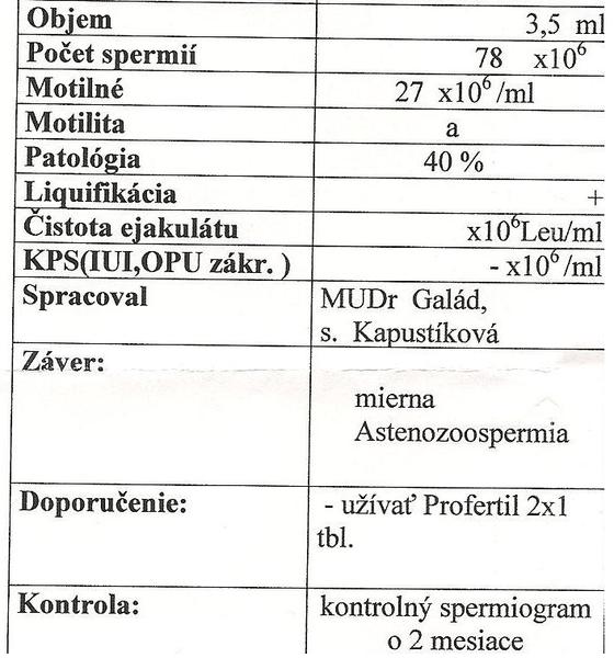 @alchemilkazltozelena to znamená znižena pohyblivost spermíí ...sa mi zdá aj to je dovod prečo sa vam nedari...aj my mám zly spg.-(((( ideme na kontorlu konocm aprila...a doktor Galád bol aký??a sestrička??operoval moju maminu vraj je velmi priijemnýý..