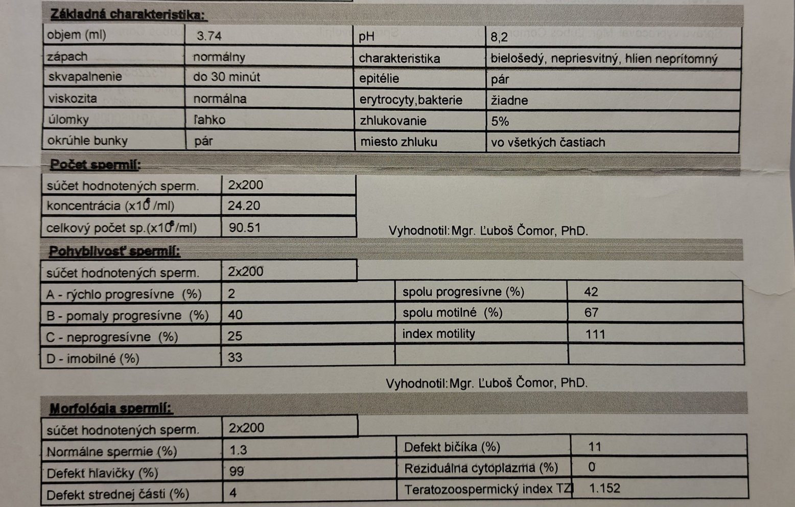 @dadi30 Je tam záver teratozoospermia. Nečakám na zázraky budeme to určite riešiť, len som chcela vedieť či vôbec existuje nejaká šanca ale asi nie ☹️☹️ Ďakujem za odpoveď
