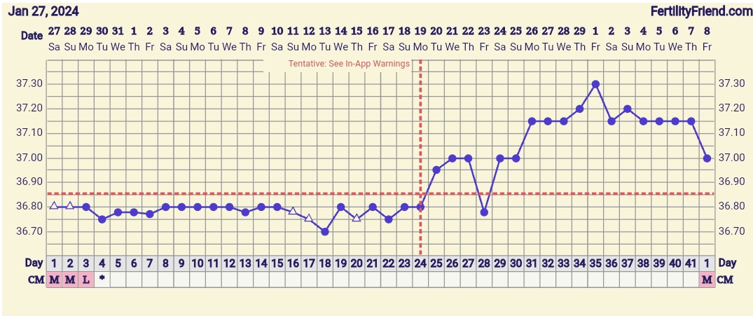 Ahojte. Snažíme sa o bábo a za posledného pol roka sa mi začali extrémne predlžovať cykly. Z pôvodných 31 dňových cyklov (ovulácia bývala na cca 18DC) sa mi cykly natiahli až na 42 dní a viac. Prikladám svoj posledný graf. Podľa bazálnej teploty sa mi posunula ovulácia na riasne neskôr, podľa teplôt za posledného polroka mávam ovuláciu vždy až po 25DC, čo mi príde strašne neskoro. Alebo môže ísť o anovulačné cykly? Mohla by som mať vysokú bazálnu teplotu, aj keby som nemala ovuláciu?