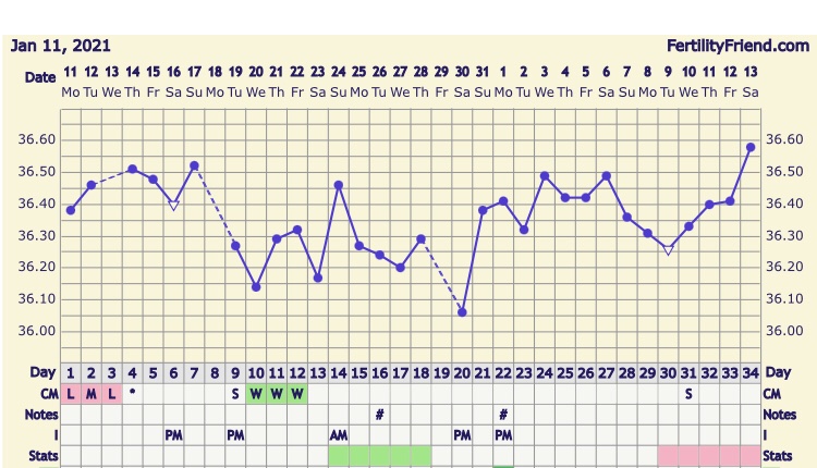 Co si myslíte o mojom grafe? Lebo som už z neho znechutená a neviem teraz či vôbec ovulácia bola. Na 22dc mi pichol dr Ovitrelle injekciu. Mala som folikul 25mm. Keď beriem do úvahy fakt že cca 36 hodín mal folikul prasknúť, tak by som mala aspoň nejaké príznaky. Hlien, bolesť, alebo aspoň prsia vždy ma bolia :( dodnes nič. Obávam sa že folik nepraskol a ovulka nebola. Inak bežne mám ovuláciu na 16-17 dc cca, cyklus trvá 30-35 dní max. Tento cyklus, keď ma vlastne aj v Car pozeral dr prvý krát, tak ako schválne mám takýto rozhadzany. Je vôbec možné aby folikul po injekcii nepraskol? 😩