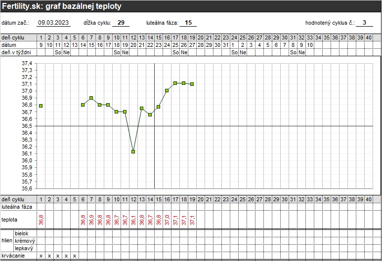 Ovulacia je posledný deň nízkych teplôt a podľa mňa bola na 15 dc, 3 nasledujúce teploty sú vyssie ako 6 predchádzajúcich