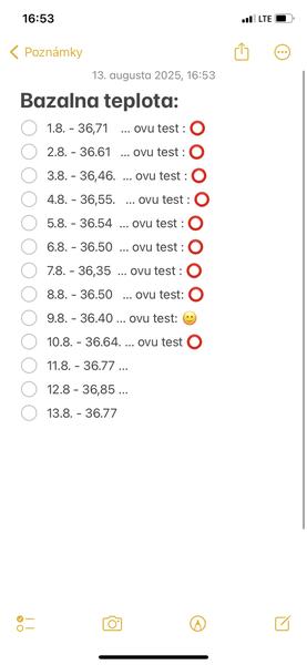Uvidis, ako bude teplota pokracovat. Ak prebehla ovulacia, tak mohla prebehnut aj neskor ako vyznacila aplikacia. Nie je to uplne zjavne pri takomto skakani teplot.