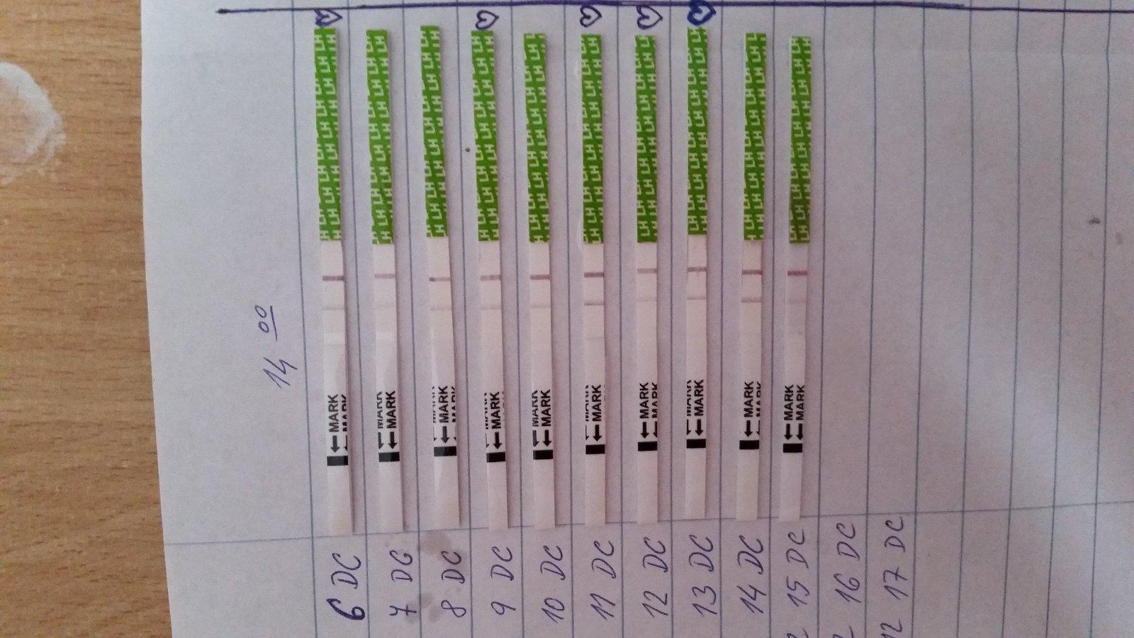 @nina4 aby bol test pozitivny musi byt testovacia ciarka silnejsia ako kontrolna..tazko to vidiet z tej fotky ale vyzera to ze tomu bolo v 11 aj 14dc splnene. zial neviem, ci aj niejdo iny ma taku skusenost ako ty, ja som to este nemala.Merala si si aj bazalnu teplotu a pozorovala hlien? Mozno ti to lepsie pomoze zistit v ktory den ovulacua naozaj nastala.