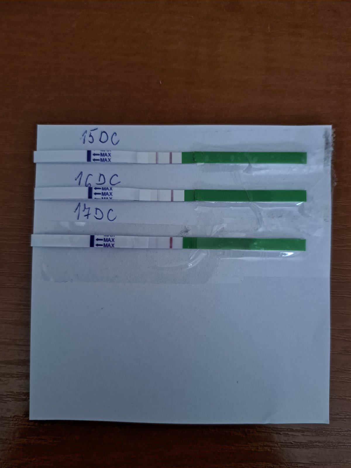 Ahojte dala som sa prvy krat na ovulacne testy ktore som robila od skoncenia ms boli stale negativne a teraz prvy krat 15dc a ciarka takato , myslela som ze na druhy den bude silnejsia ale nie to uz slabla .. 🤔 styk bol 13Dc a vcera som cely den pocitovala bolest ako keby som prechladnuta ale to vzdy preslo po chvilke 🤔 myslela som ze ovulacia ale tie testy slabnu 😒 moj cyklus je posledne mesiace 29 az 30 dc uz jedno dieta mam ale aj to trvalo kym sa podarilo tak preto teraz idem skusit ovulacne testy .. myslite ze ovulacia prebehla aj ked nebola druha ciarka silnejsia ale len takato?