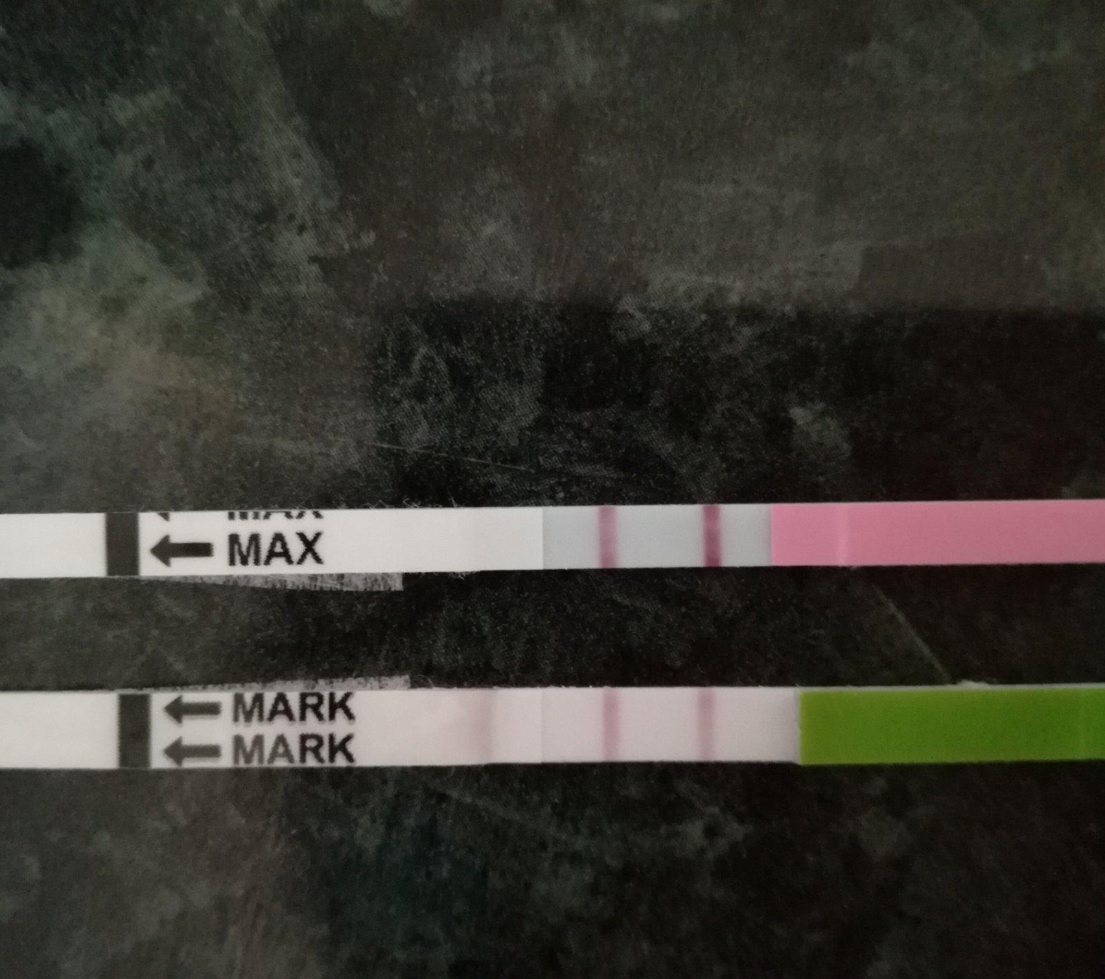 Ahojte...baby...cely mesiac si robim ovulacne testy...nic...ciarka stale slaba...tak som to brala tak, ze tento mesiac zrejme bez ovulacie ( inak som s nimi zacala prvy krat v zivote 🙂 )...po druhej dcerke mam cyklus riadne rozhadzany, ale zazrakom som posledne dva mesiace mala 35 dni...dnes mam 32dc...cize ratam, ze uz mi behom par dni pride navsteva...ale dnes som len tak spravila test...teda testy, jeden co mi zostal a druhy z novych...a toto je vysledok...ono sa to pred ms moze takto stmavnut??