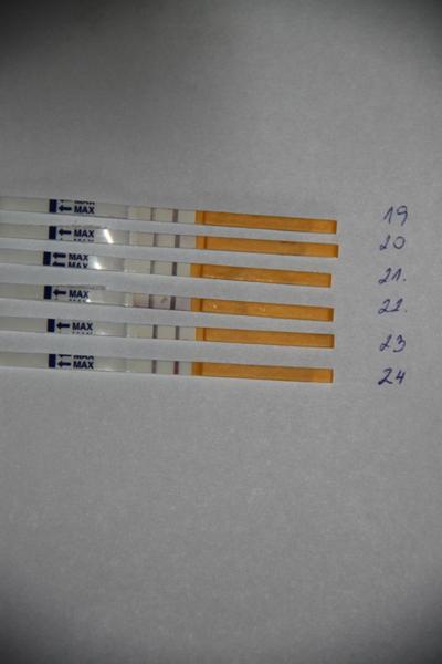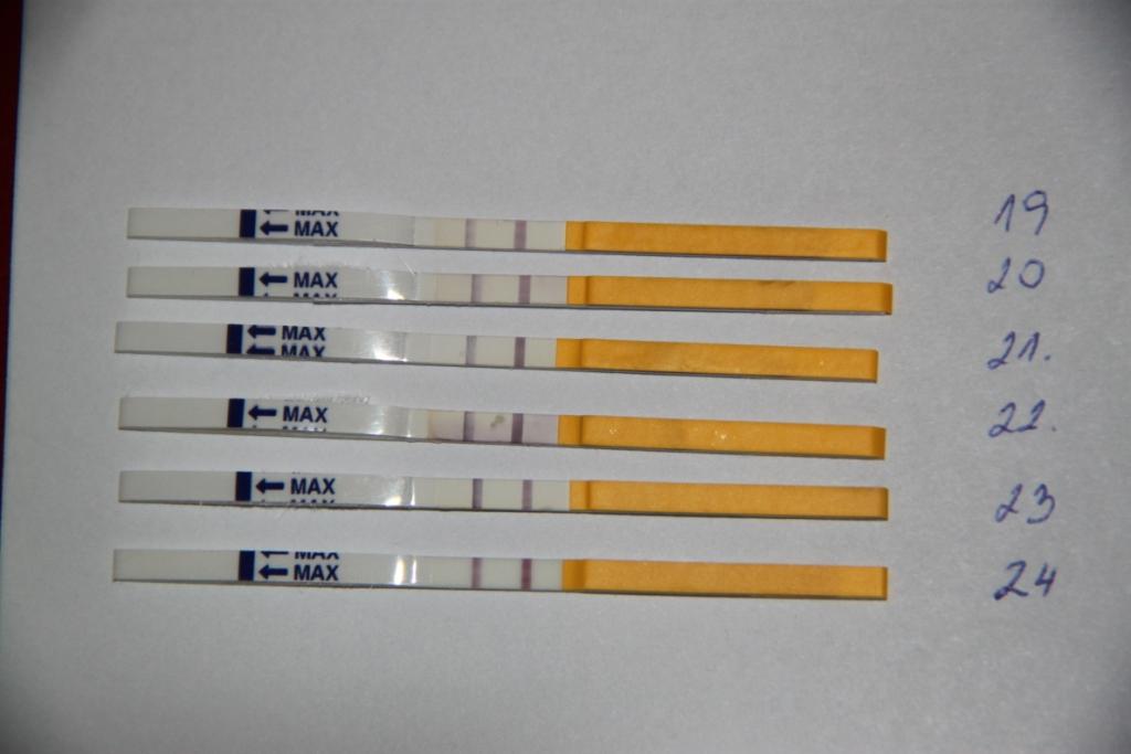 @lauritka chcem sa opýtať od 8-11 DC som mala tu druhu čiaročku veľmi slabú dnes 12 DC som si o 16.00 urobila jeden testík a potom ma začali bolieť vaječníky a v podbrušku okolo 19.20 som si urobila ďalší testík je pozitívny, alebo nie????? Mám si urobiť ešte jeden testík?