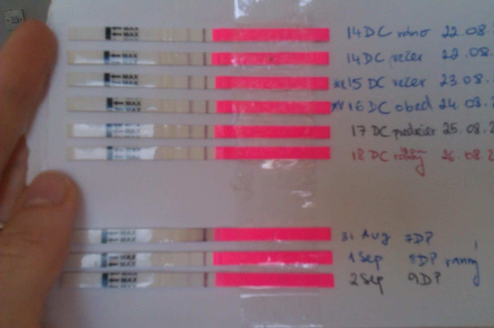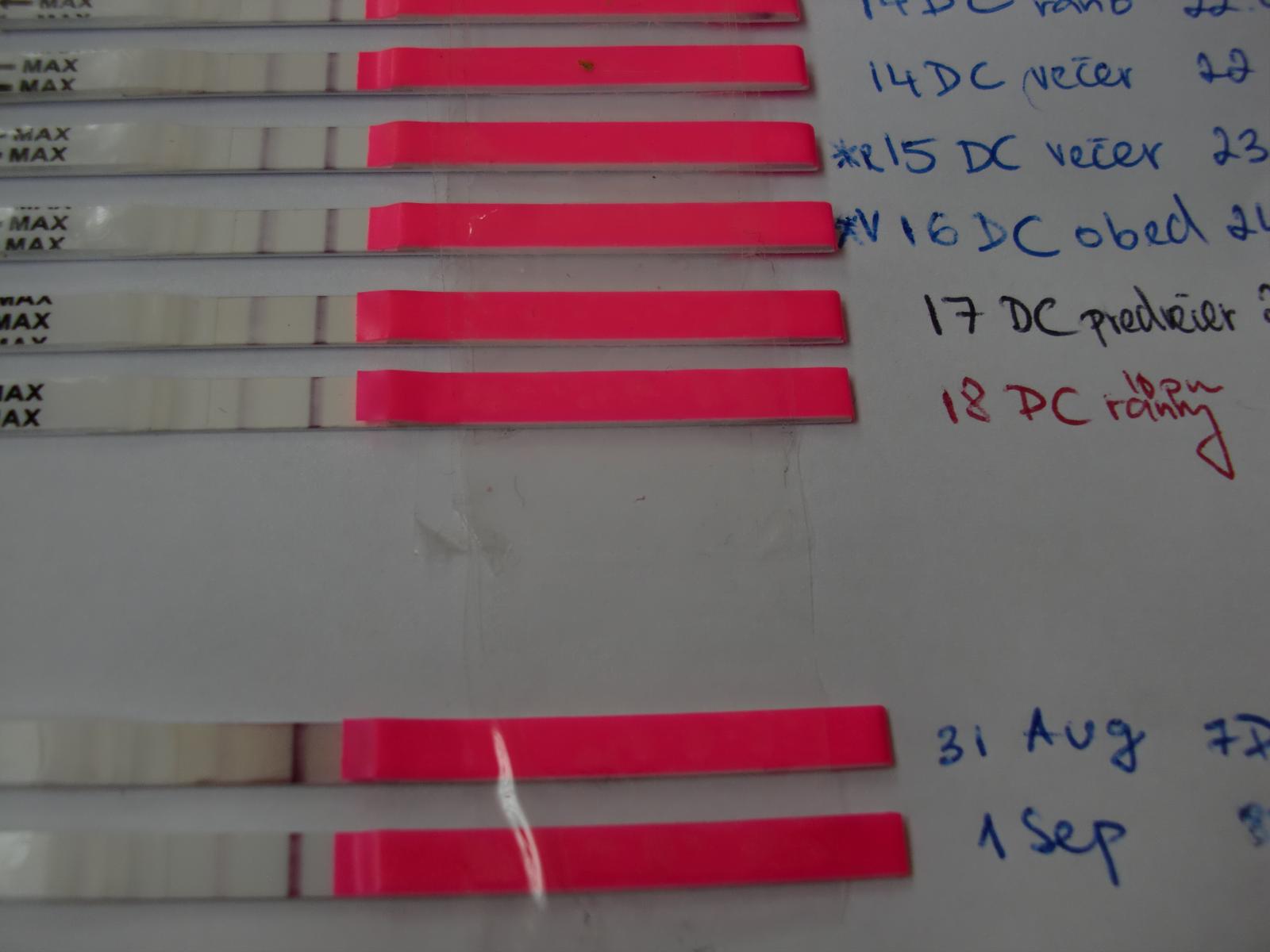 ch baby robim ovu testy uz tyzden a zatial je tam len taka slabulinka ciarocka ktou skoro ani nevidno az ked uschne tak cca 10 min. a to som dnes 13dc. ja uz neviem ci mam testy na prd alebo co sa deje :(