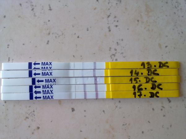 ten prvý test je 10 DC a ten druhý je dnešný 11 DC, čo myslíte je pozitívny???? Minulý mesiac som mala pozitívny ovulačný test až na 12 DC. manžel príde až v piatok večer, takže to asi nestíhame ☹