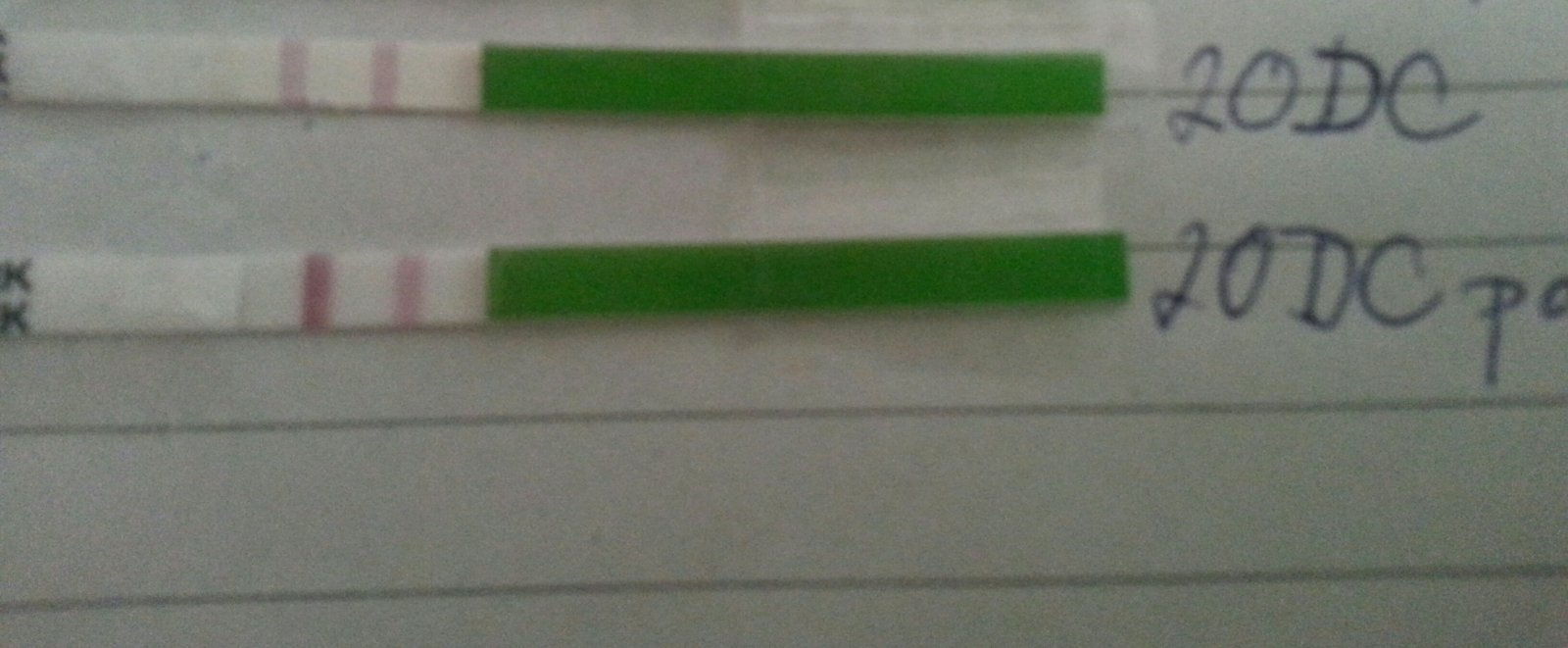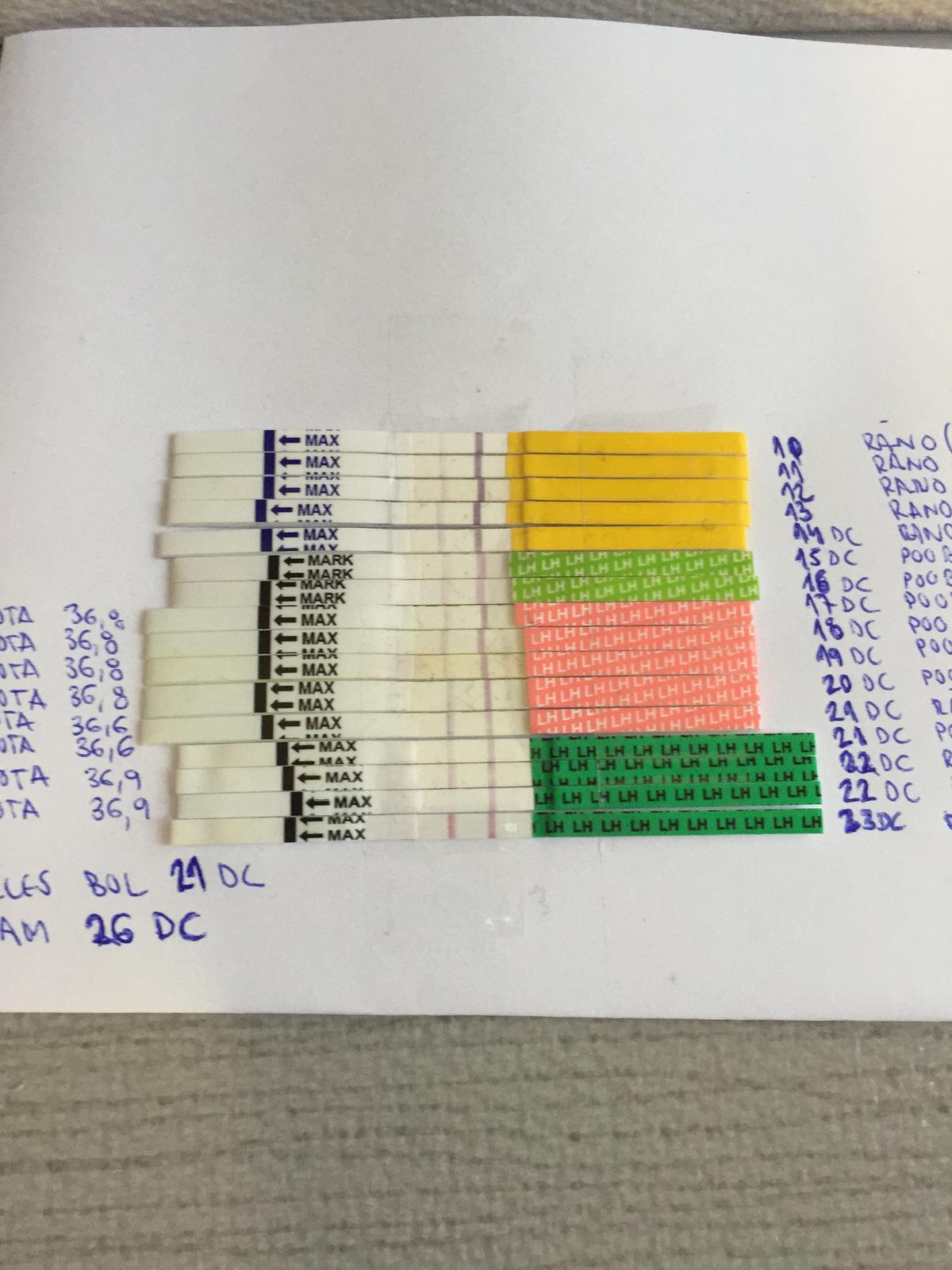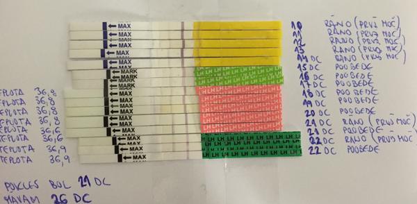 @lauritka ahoj no ja teda 21dc aj 22dc aj dnes 23dc som mala pekny pozitivny testik ovulacny... Teplota sa drzi tretí deň hore nad 36,8 neklesa... Tak kolky som DPO?? Prvy ,druhy alebo treti???😳 podotykam ze zase len ranny bol pozitivny... (Poobedne a vecerne mam uplne negativne,biedna skoro ziadna druha čiarka)Aj toho 21 aj 22dc som mala rovnako tmavy ako dnes rano len su uz vyschnute tak to tak nevidieť.. Dnesny 23 dc som odfotila mokry este. Tak beriem to tak ze dnesny je ovulacny deň najsilnejsi..... Za 3 dni menzes ma prist mavam 26DC😊