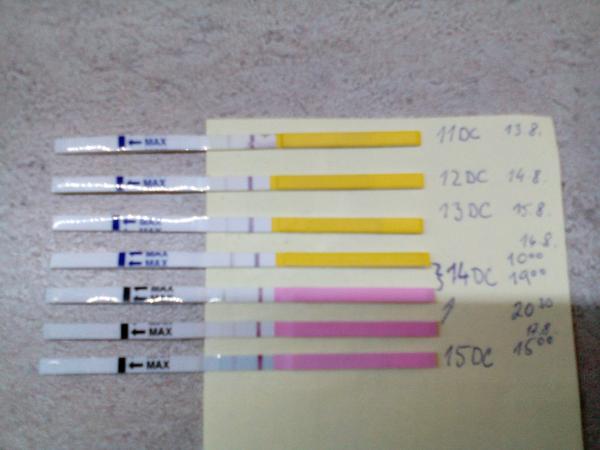 @lauritka ahoj a co si myslis o tomto? 14DC je dnes, robila som si jeden rano o 10:00 a este teraz o 19:00, rano mi vysiel tmavsi, uz som sa tesila, ze to stupa a teraz ledva vidno druhu ciarku... co to znamena? mam si urobit este jeden? okolo 20-21:00? ako so si robila aj predtym? uz mam aj vytok, do biela na nohavickach... obidva su pepino, dnes som kupila novy balik a bol ruzovy...