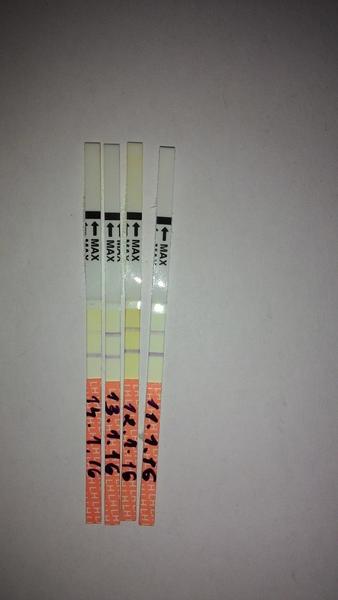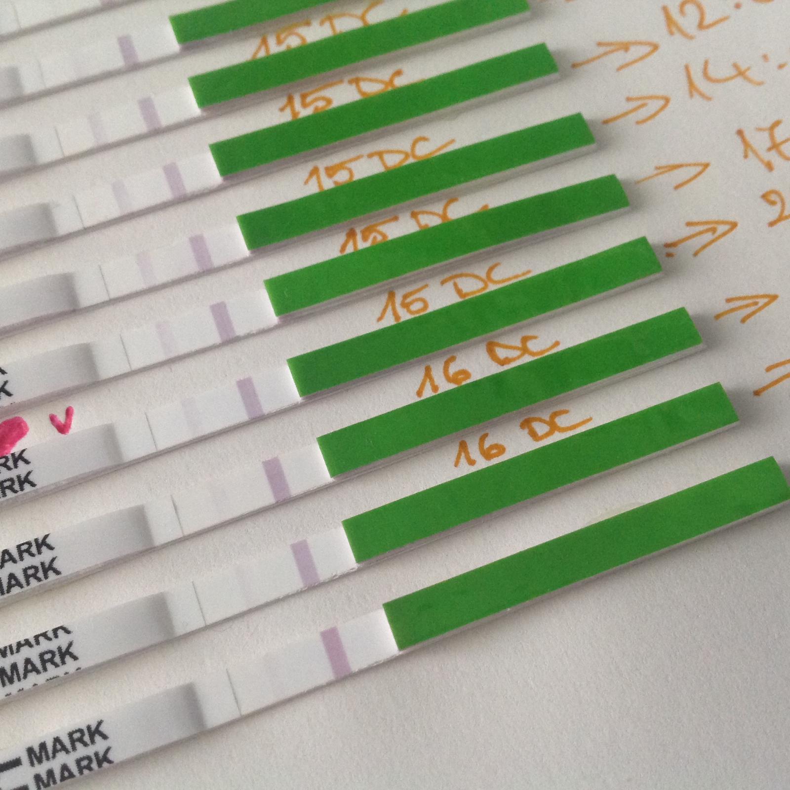 No veru s tymi ovu testikmi je to tak,ze ked je ciarka najsilnejsia,tak je vrcholna hladina LH hormonu, ktory sposobuje dozrievanie folikulu.Potom praskne a hladina klesa...uloha bola splnena.Keby si merala bazalnu teplotu BH,tak by si si to spätne potvrdila.