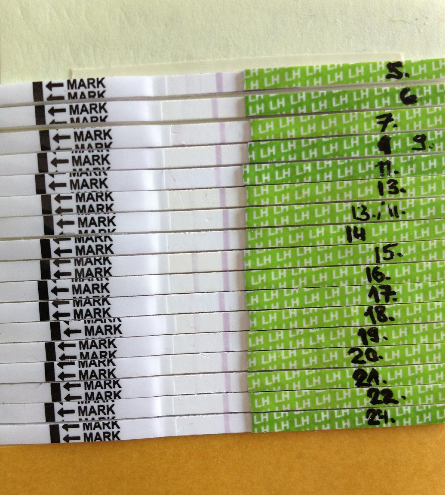 ahojte, tento mesiac prvy krat skusam ovulacne testy, kedze cykly mam dlhe a nepravidelne. testujem, aby som vedela ci vobec a ak ano tak kedy mam ovulku. chceli by sme druhe bejby... 😵 no ale som z toho uplne mimo, vobec neviem, co si o tomto cykle mam mysliet.. ovulka asi ani neprebehla, MS som zatial nedostala takze testovat budem asi dalej, aj ked nasu rodinu asi financne zrujnujem za chvilu 😀 😀 . BT zatial nemeriam, ani hlien nesledujem takze toto je jedine od coho sa viem odvijat. prosim, ak viete, poradte 😉