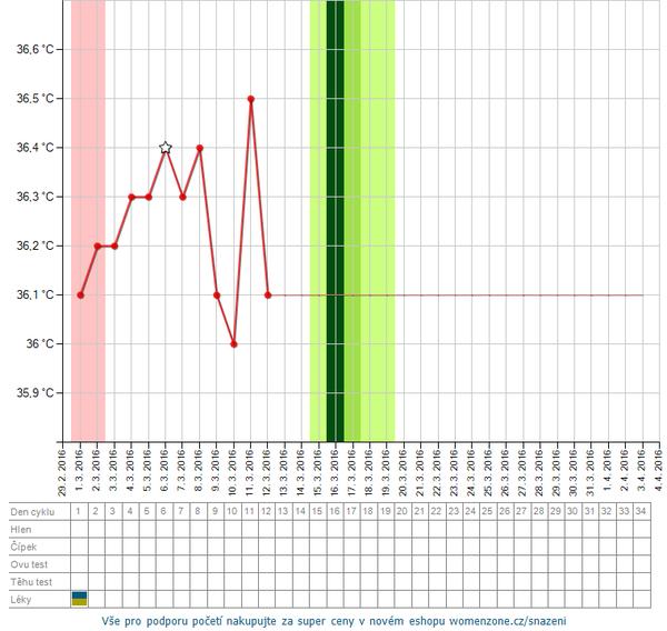 @miska_hryzka no ved uvidim co bude zajtra,teplota ide pomaly horeg ak pojde dalej hore,tak som nevystihla vrchol. Ale ak sa velmi nezvysi,tak ovu tento mesiac asi nebola. No moze byt ze sa fakt tak velmi cistim,ze je to takto.Ani vajecniky som tak velmi necitila ako inokedy.